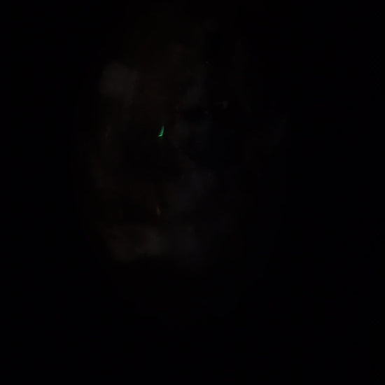Under UV light, areas of the crystal show a subtle white fluorescence, adding an extra layer of interest for collectors.