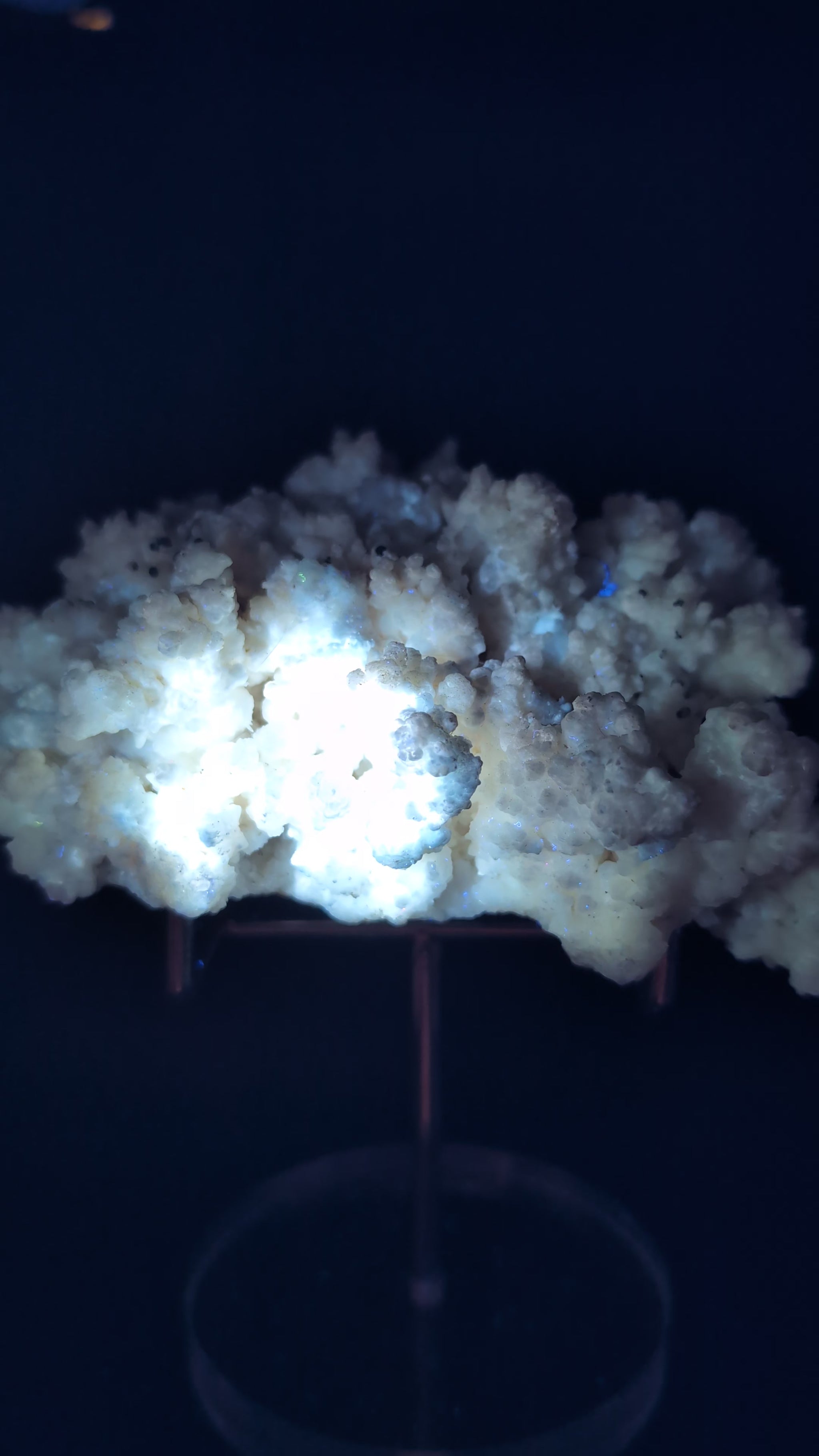 Unlike standard UV minerals, this specimen continues glowing after the UV light is removed, making it far more interactive and visually striking.